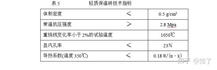 輕質保溫磚的技術指標必須符合表5的要求。