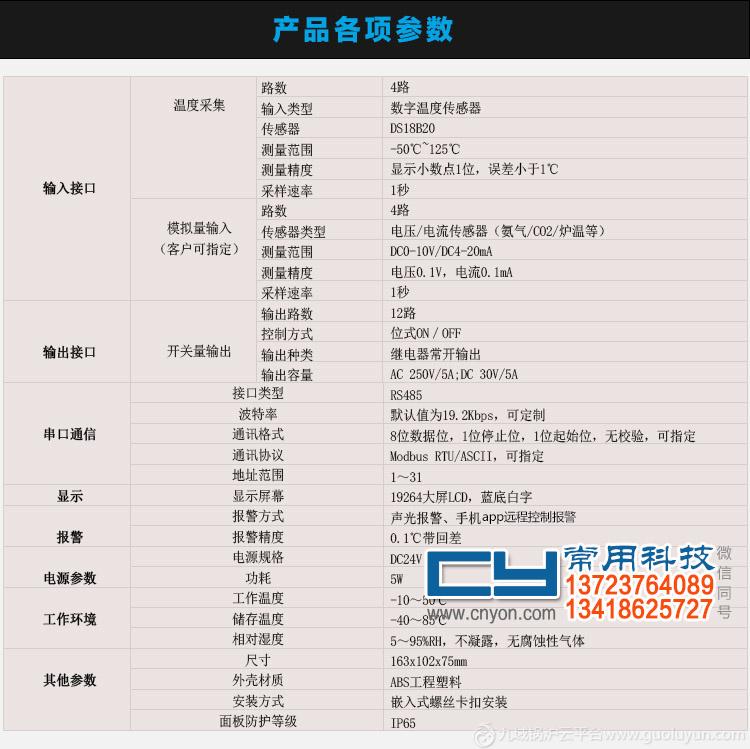 3. 4路溫度采集,可采集4個點的溫度,4路模擬量輸入(DC0-10V/DC4-20mA輸入),可設置模擬映射參數給客戶測量指定的爐溫(高溫)、濕度、氨氣、CO2等其他環境參數。